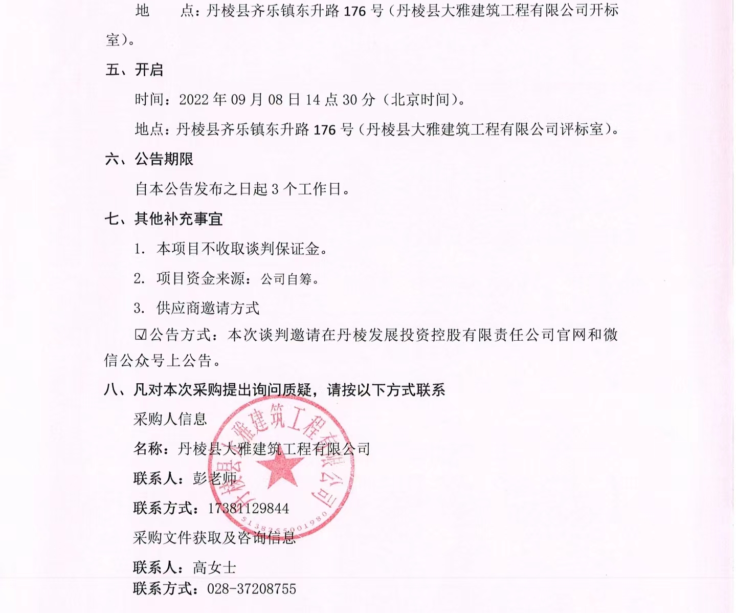 丹棱縣熊河碥片區(qū)市政基礎(chǔ)設(shè)施建設(shè)項目一期(城市雙修)設(shè)計施工總承包(EPC)異形構(gòu)筑物(親水亭)采購項目談判邀請公告