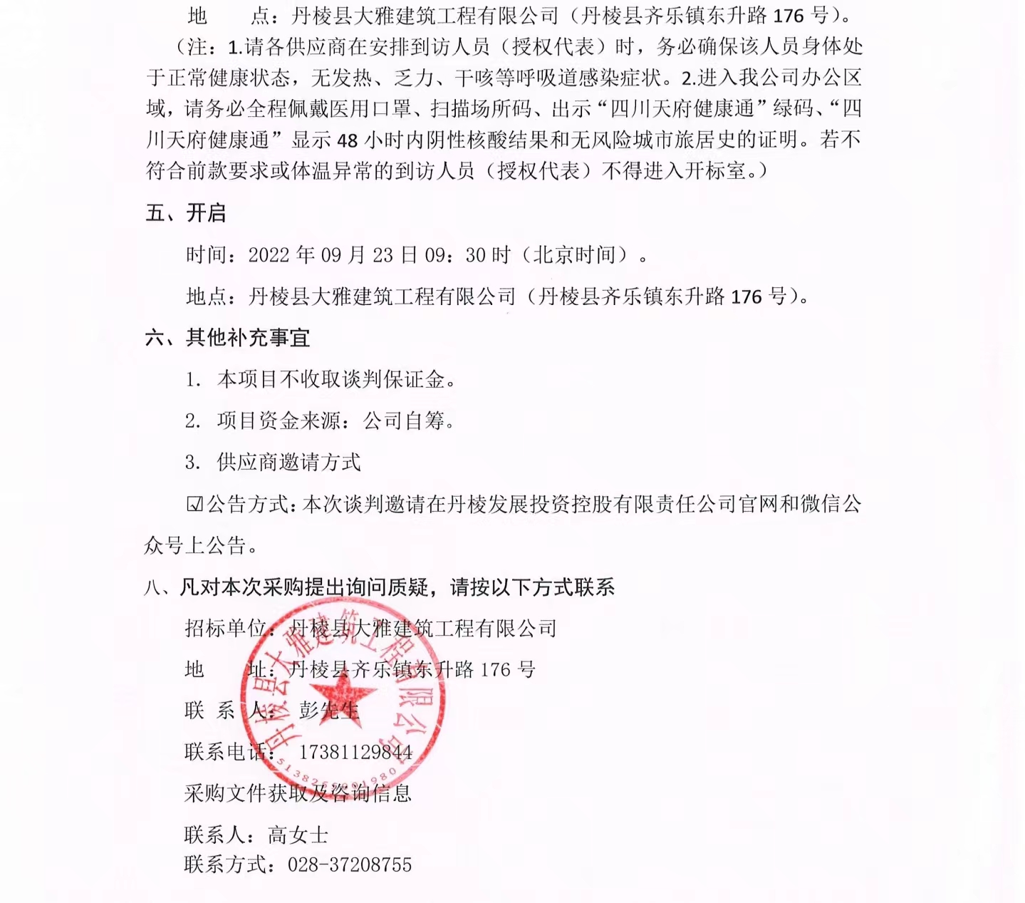 丹棱縣全域農(nóng)旅融合仁美鎮(zhèn)生態(tài)濕地公園(社區(qū)公園)、廣場(chǎng)及配套旅游設(shè)施建設(shè)項(xiàng)目稻田餐廳工程幕墻專業(yè)分包項(xiàng)目談判邀請(qǐng)公告
