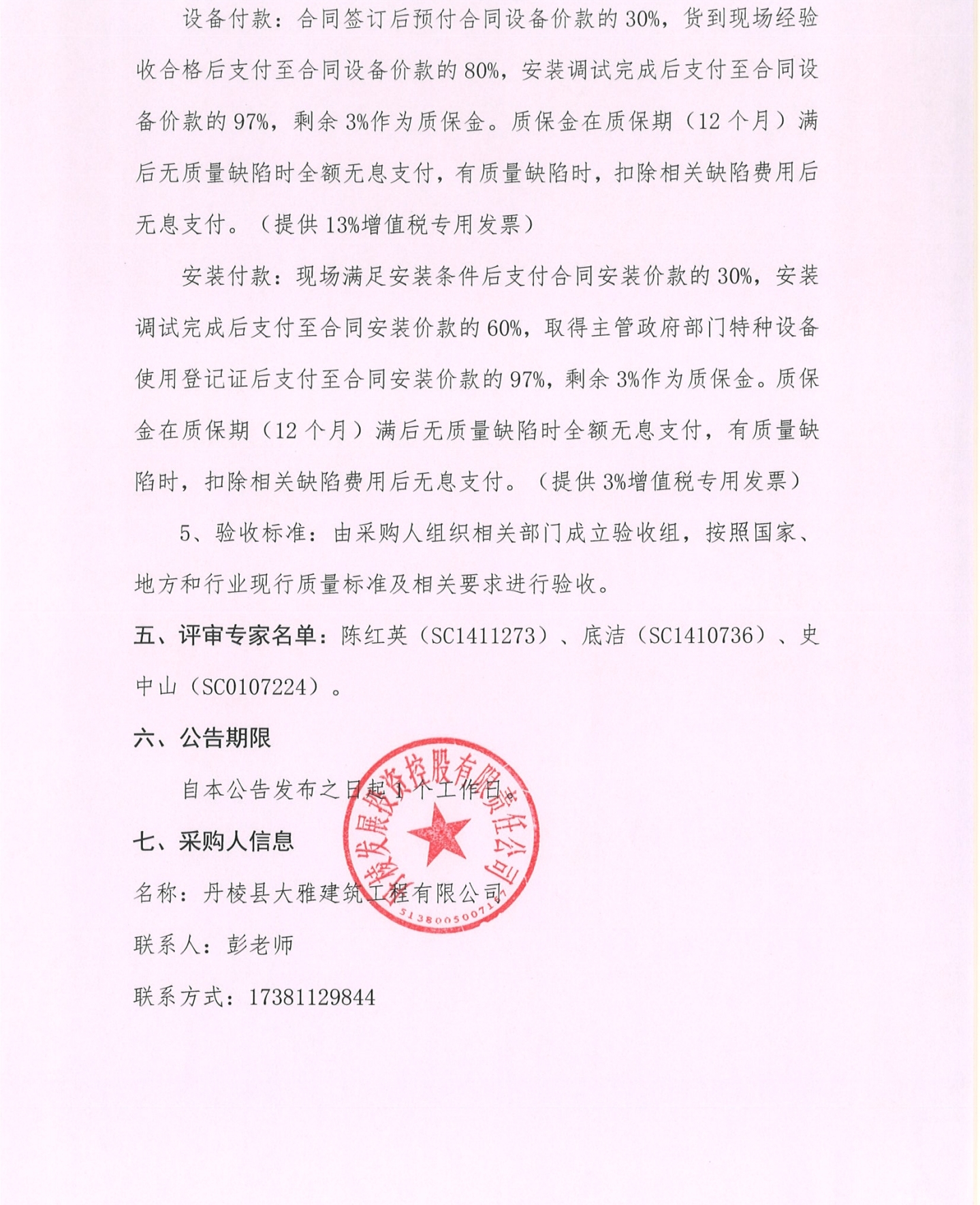 丹梭縣食品園區(qū)建設(shè)項(xiàng)目 (一期) --丹棱凍粑產(chǎn)業(yè)園建設(shè)項(xiàng)目設(shè)計(jì)、施工、采購總承包 (EPC)電梯采購及安裝采購項(xiàng)目 (第二次)成交結(jié)果公告