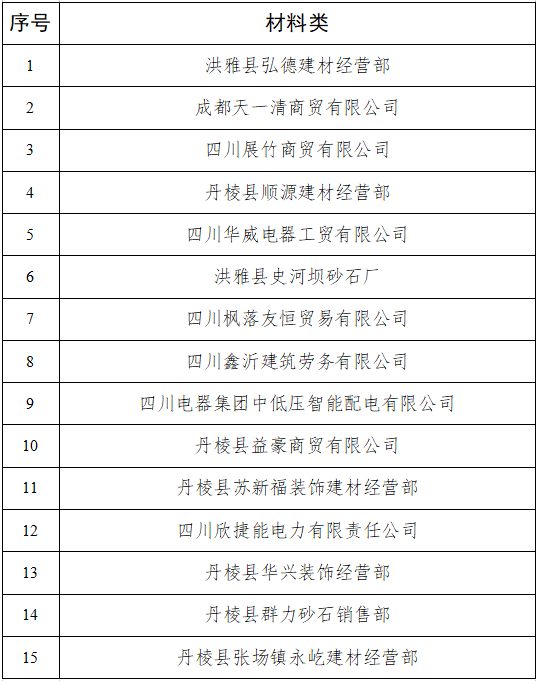 附件:丹棱發(fā)展投資控股有限責(zé)任公司第二批入庫供應(yīng)商名單