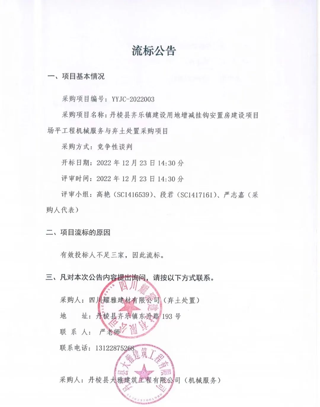丹棱縣齊樂鎮(zhèn)建設(shè)用地增減掛鉤安置房建設(shè)項目場平工程機(jī)械服務(wù)與棄土處置采購項目流標(biāo)公告