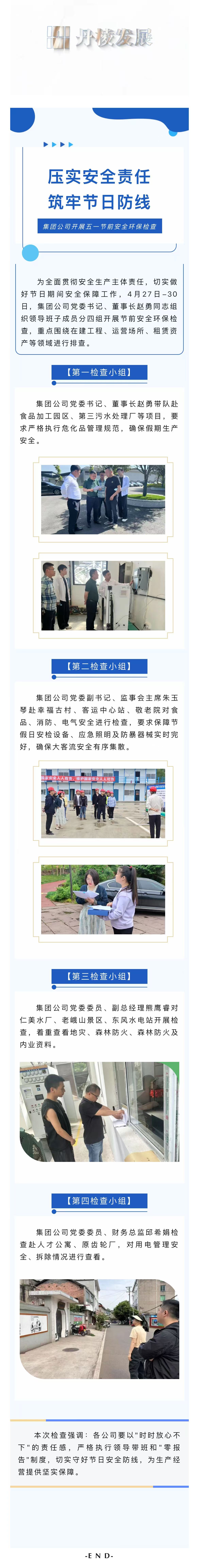 壓實(shí)安全責(zé)任 筑牢節(jié)日防線——集團(tuán)公司開(kāi)展五一節(jié)前安全環(huán)保檢查