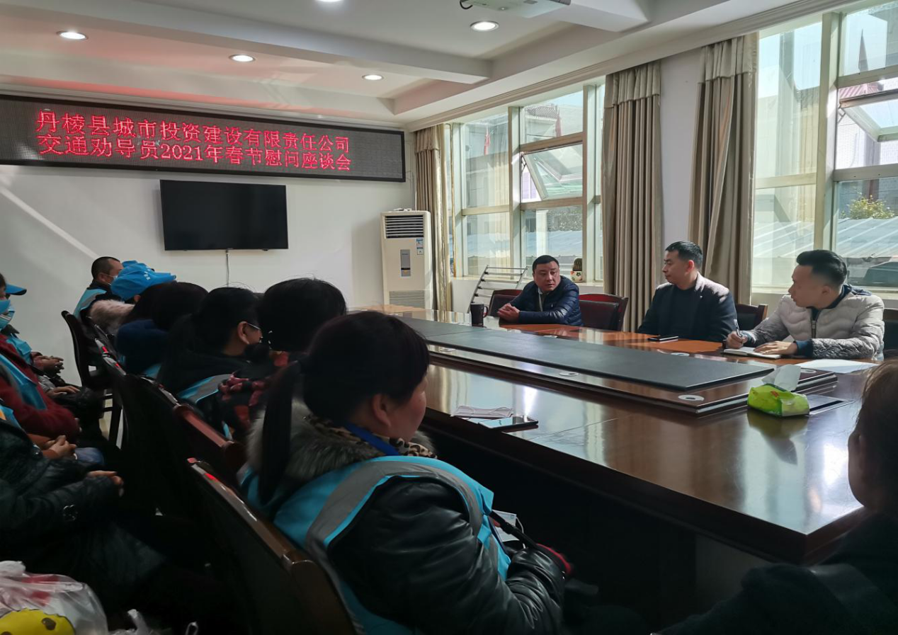 春節(jié)將至,歲寒情深。2月5日,丹棱縣城市投資建設有限責任公司組織召開了交通勸導員2021年春節(jié)慰問座談會,會議在丹發(fā)展公司董事長趙勇同志的主持下召開。