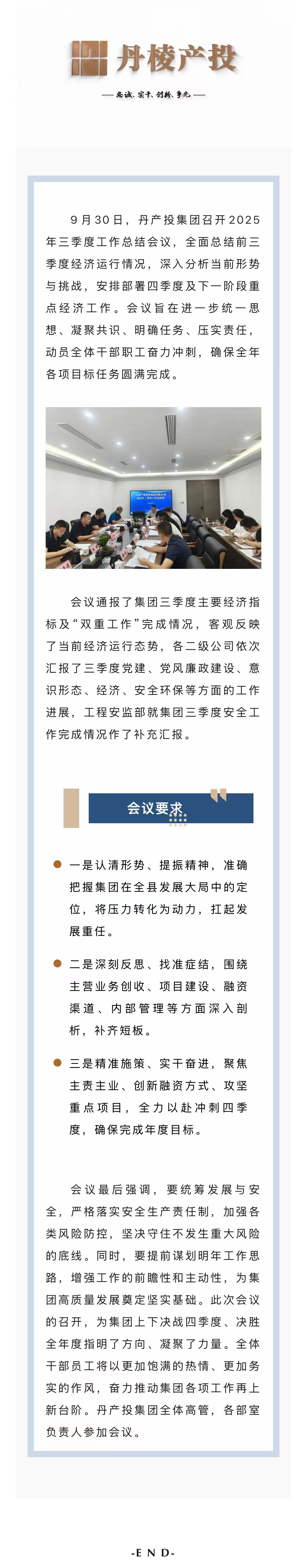 錨定目標(biāo) 精準(zhǔn)施策 全力沖刺全年任務(wù)丨丹產(chǎn)投集團(tuán)召開2025年三季度工作總結(jié)會(huì)議