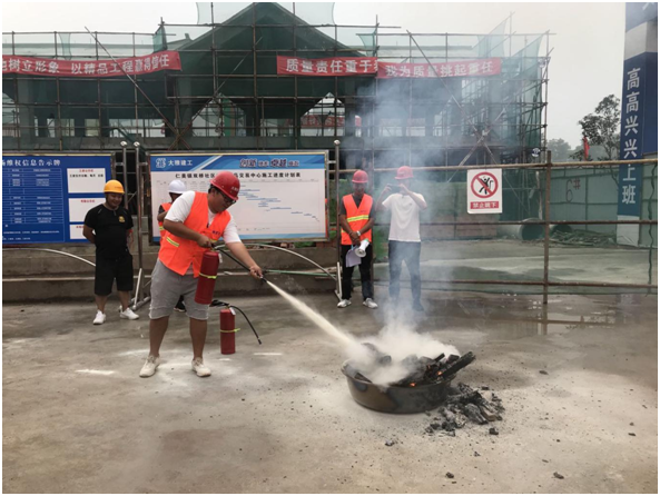 演練模擬施工現(xiàn)場(chǎng)材料堆場(chǎng)模板燃燒引起火災(zāi),項(xiàng)目現(xiàn)場(chǎng)人員發(fā)現(xiàn)火情,立即向項(xiàng)目管理人員報(bào)告,管理人員立即啟動(dòng)《施工生產(chǎn)現(xiàn)場(chǎng)火災(zāi)事故應(yīng)急救援預(yù)案》。不到2分鐘,疏散引導(dǎo)組將火災(zāi)現(xiàn)場(chǎng)被困人員全部安全有序疏散到了安全地帶,同時(shí),保衛(wèi)警戒組做好巡邏檢查工作,禁止無(wú)關(guān)人員進(jìn)入危險(xiǎn)區(qū)域,消防滅火組及時(shí)進(jìn)場(chǎng)切斷火災(zāi)現(xiàn)場(chǎng)的電源,迅速利用干粉滅火器進(jìn)行滅火。整個(gè)演練過(guò)程,組織得力,秩序井然。